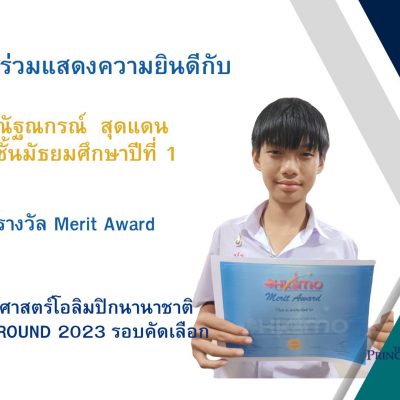 ขอชื่นชมและร่วมแสดงความยินดีกับ เด็กชายณัฐณกรณ์ สุดแดน นักเรียนชั้นมัธยมศึกษาปีที่ 1 ที่ได้รับรางวัล Merit Award จากการแข่งขันรายการคณิตศาสตร์โอลิมปิกนานาชาติ HKIMO HAET ROUND 2023 รอบคัดเลือก สอบเมื่อวันที่14 พฤษภาคม 2566 ประกาศผลเมื่อวันที่ 24 พฤษภาคม 2566
