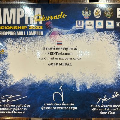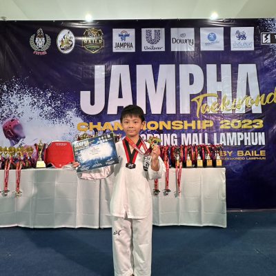 ขอชื่นชมและร่วมแสดงความยินดีกับเด็กชายชวนนท์ กิตติชญากรณ์ ที่ได้รับรางวัลเหรียญทอง ประเภทต่อสู้ Class C จากการแข่งขันรายการ Jampha championship By Baile Taekwondo Lamphun 2013 จัดโดย Jampha Shopping Mall Lamphun และ ไบเล่เทควันโด้ลำพูน ณ ห้งสรรพสินค้าแจ่มฟ้าช้อปปิ้งมอลล์ จังหวัดลำพูน เมื่อวันที่ 24 มิถุนายน 2566