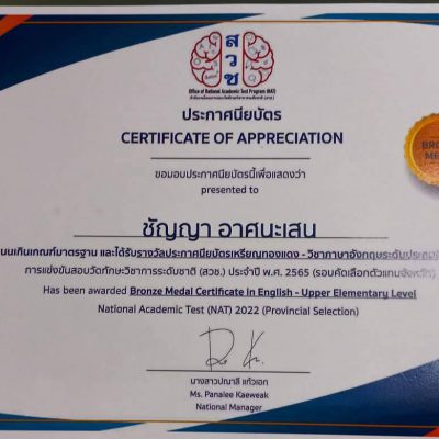 ที่ได้รับรางวัลประกาศนียบัตรเหรียญทองแดง วิชาภาษาอังกฤษ ระดับชั้นประถมศึกษาตอนปลาย