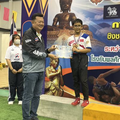 ที่ได้รับรางวัลรองชนะเลิศอันดับ 1 เหรียญเงิน ในการแข่งขันกีฬามวยปล้ำในร่มและมวยปล้ำชายหาด ชิงชนะเลิศแห่งประเทศไทยประจำปี 2566 ประเภท Touch Wrestling ชาย U12