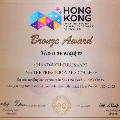 ขอชื่นชมและร่วมแสดงความยินดีกับเด็กชายฉันทัช เชื้อสะอาด นักเรียนชั้นมัธยมศึกษาปีที่ 3 ที่ได้รับรางวัลเหรียญทองแดง Bronze Award จากการแข่งขันรายการคณิตศาสตร์ HKICO HongKong International Computational Olympiad จัดโดย OCEC Olympiad Champion Education Center กระทรวงศึกษาธิการประเทศฮ่องกง ณ กรุงเทพมหานคร เมื่อวันที่ 4 มิถุนายน 2566