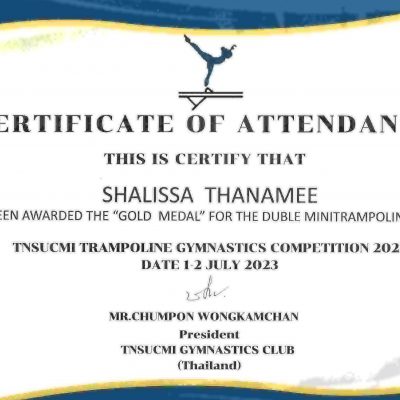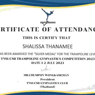 จากการแข่งขัน TNSUCMI Trampoline Gymnastics Competition 2023 โดย TNSUCMI GYMNASTICS CLUB (Thailand) ณ ศูนย์ฝึกยิมนาสติก มหาวิทยาลัยการกีฬาแห่งชาติ วิทยาเขตเชียงใหม่ ระหว่างวันที่ 1-2 กรกฎาคม 2566