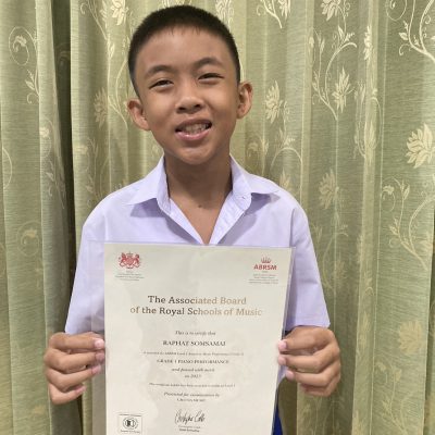 ที่ได้รับรางวัล Grade 1 passed with merit จากการแข่งขัน Grade 1 Piano Performance