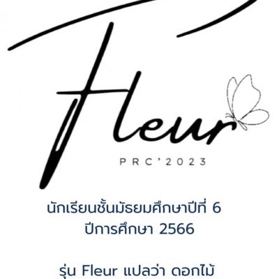 ขอชื่นชมและแสดงความยินดีกับ นางสาวอรรัมภา ดวงวิโรจน์ นักเรียนชั้น ม.6/2 ผู้ออกแบบโลโก้รุ่นสำหรับนักเรียนชั้นมัธยมศึกษาปีที่ 6 ปีการศึกษา 2566 ชื่อรุ่น Fleur แปลว่า ดอกไม้