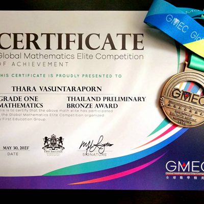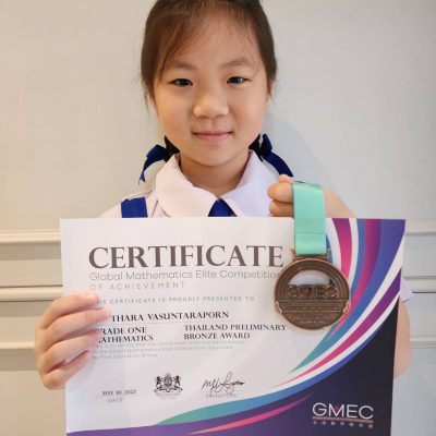 ขอชื่นชมและร่วมแสดงความยินดีกับ เด็กหญิงธารา วสุนธราพร ชั้นประถมศึกษาปีที่ 2/1 ที่ได้รับรางวัล เหรียญทองแดง (Bronze) จากการแข่งขันรายการ Global Elite Mathermatics Competition (GMEC) THAILAND 2023 ประเภท Basic Math ระดับ Grade 1 รอบ Preliminary (online) เมื่อวันที่ 30 พฤษภาคม 2566