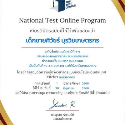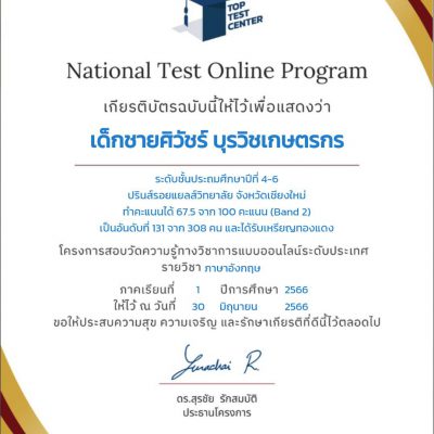 จากการสอบ โครงการ National Math-English Test online จัดโดยสถาบัน TOP TEST CENTER