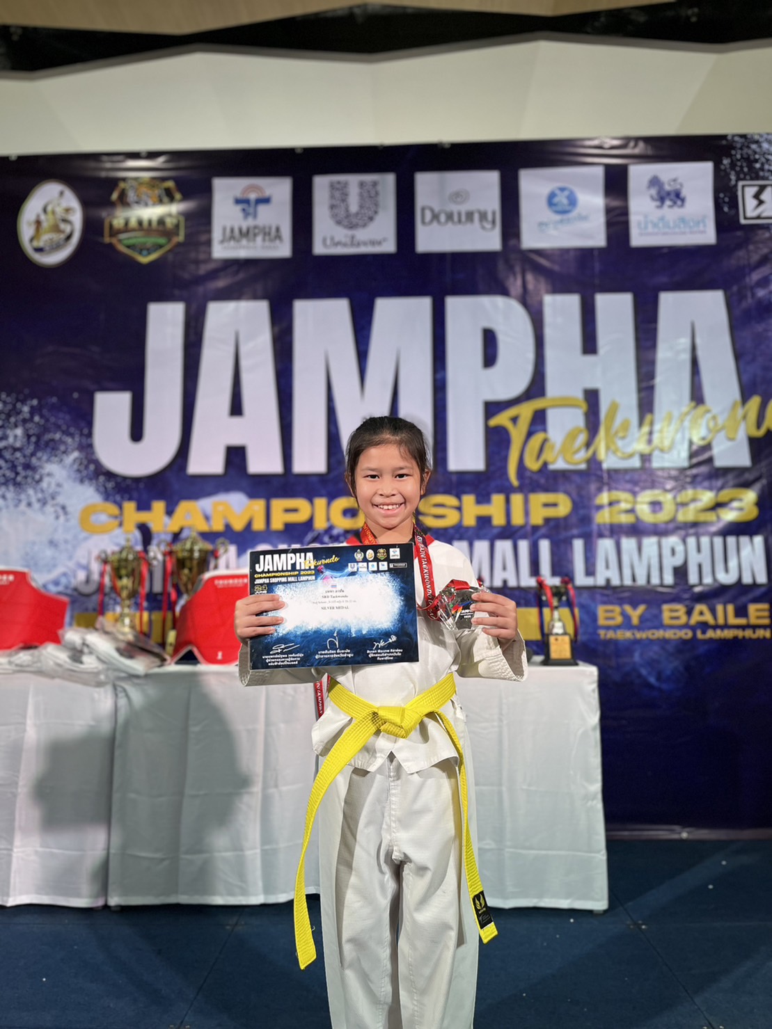 ที่ได้รับรางวัลเหรียญเงิน จากการแข่งขันรายการเทควันโด ประเภท ต่อสู้ รุ่นอายุ 9-10 ปี