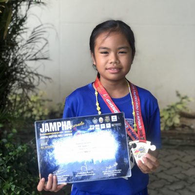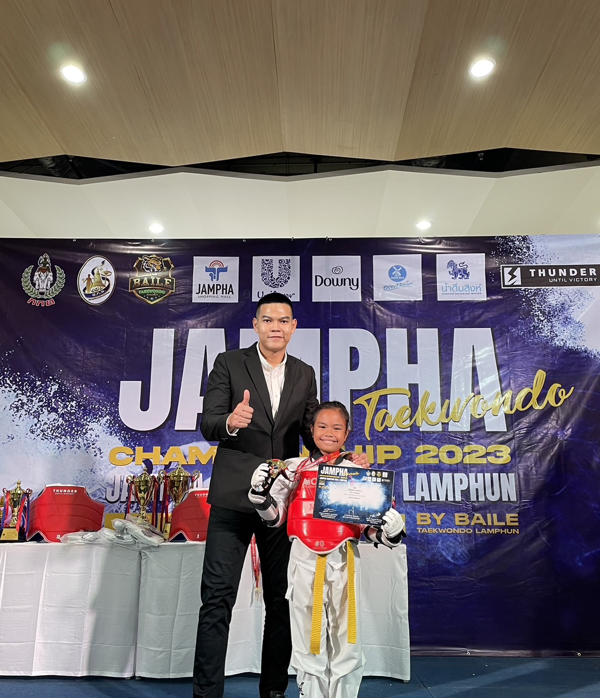ที่ได้รับรางวัลเหรียญทอง จากการแข่งขันรายการเทควันโด ประเภท ยุวชน หญิง อายุ 9 – 10 ปี รุ่น E น้ำหนัก 29-32 กก. ประเภทต่อสู้ KYORUGI สังกัดทีม STC Academy