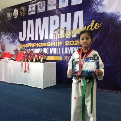 ได้รับรางวัลชนะเลิศเหรียญทอง การแข่งขันเทควันโด ประเภทต่อสู้ยุวชนหญิง 7-8 ปี คลาสB รุ่นน้ำหนัก 20-22 กิโลกรัม