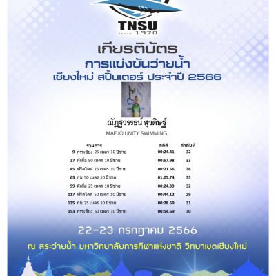 รายการแข่งขันว่ายน้ำเชียงใหม่ สปิ้นเตอร์ ประจำปี 2566