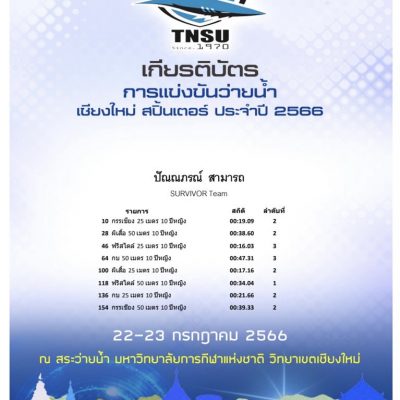 จากการแข่งขันว่ายนำ้เชียงใหม่สปริ้นเตอร์ ประจำปี 2566