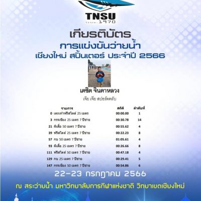 รายการ การแข่งขันว่ายน้ำ เชียงใหม่สปริ้นเตอร์ ประจำปี 2566