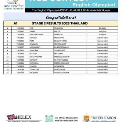 จากการแข่งขันภาษาอังกฤษโอลิมปิกสำหรับเยาวชนอายุ 6-18 ปี ครั้งที่9 (KGL Contest Olympiad)
