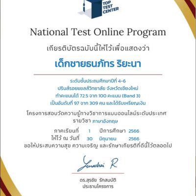 ที่ได้รับรางวัลเหรียญเงิน วิชาภาษาอังกฤษ จากโครงการสอบวัดความรู้ทางวิชาการแบบออนไลน์ ระดับประเทศ ประจำปี พ.ศ. 2566