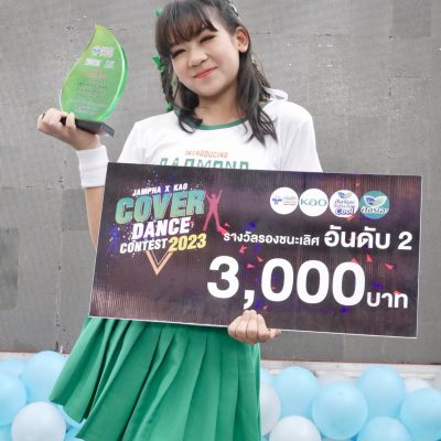 จากการประกวดแข่งขัน Jampha X Kao CoverDance Contest 2023 จัดโดย บริษัท แจ่มฟ้าเซฟมาร์ท จำกัด ร่วมกับ บริษัท คาโอ อินดรัสเตรียล ประเทศไทย จำกัด (โดยผลิตภัณฑ์ผ้าอนามัยลอรีเอะ) เมื่อวันที่ 13 สิงหาคม 2566
