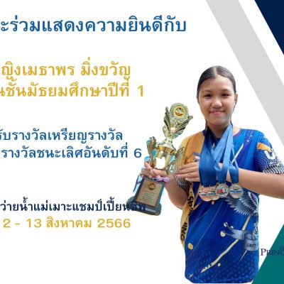 ขอชื่นชมและร่วมแสดงความยินดีกับ เด็กหญิงเมธาพร มิ่งขวัญ นักเรียนชั้นมัธยมศึกษาปีที่ 1 ที่ได้รับรางวัล