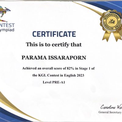 ขอชื่นชมและร่วมแสดงความยินดีกับ เด็กชายปรมะ อิศราภรณ์ ชั้นประถมศึกษาปีที่ 2/3 ได้คะแนน 82% ระดับ Pre-A1 จากรายการแข่งขันภาษาอังกฤษโอลิมปิกสำหรับเยาวชนอายุ 6-18 ปี ครั้งที่ 9 2023 (KGL Contest English Olympiad) ณ โรงเรียนมงฟอร์ตวิทยาลัย เมื่อวันที่ 21 พฤษภาคม 2566