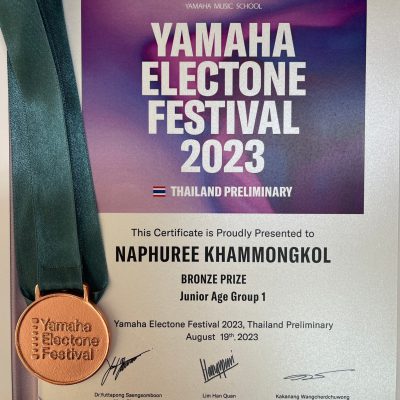 ขอชื่นชมและร่วมแสดงความยินดีกับเด็กชายณภูรี คำมงคล ที่ได้รับรางวัลBRONZE PRIZE ประเภท Junior Age Group 1 ในรายการ Yamaha Electone Festival 2023 (Thailand Preliminary Round) ณ Yamaha Music Hall อาคารสยามกลการ จัดโดย สถาบันดนตรียามาฮ่า เมื่อวันที่ 19 สิงหาคม 2566