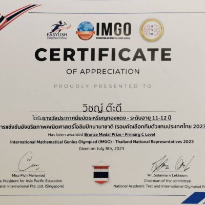 ขอชื่นชมและร่วมแสดงความยินดีกับ เด็กชายวิชญ์ ต๊ะดี นักเรียนชั้นมัธยมศึกษาปีที่ 1 ที่ได้รับรางวัลเหรียญทองแดง จากเมื่อวันที่ 8 กรกฎาคม 2566