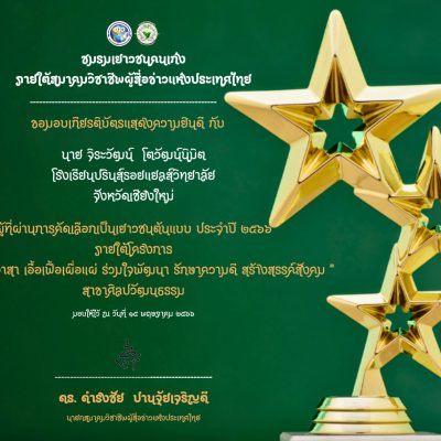 ขอชื่นชมและแสดงความยินดีกับ นายจิระวัฒน์ โตวัฒน์นิมิต ม.4/7 ที่ได้รับรางวัลจากการร่วมกิจกรรมกับหน่วยงานภายนอก ดังนี้