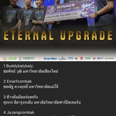 ขอชื่นชมและแสดงความยินดีกับ นายพงษ์พัฒน์ กันธะโน ม.6/3 ที่ได้รับรางวัลชนะเลิศ (ประเภททีม) รับเงินรางวัล 50,000 บาท จากการแข่งขัน ROV CAMT CMU League 2023 เมื่อวันที่ 5 สิงหาคม 2566 จัดโดยวิทยาลัย ศิลปะ สื่อ และเทคโนโลยี มหาวิทยาลัยเชียงใหม่ (รวมทีมกับศิษย์เก่า PRC)