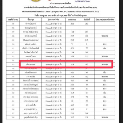 ที่ได้รับรางวัลเหรียญทองแดงจากการแข่งขันอัจฉริยภาพคณิตศาสตร์โอลิมปิกนานาชาติ(รอบคัดเลือกทีมตัวแทนประเทศ 2023)