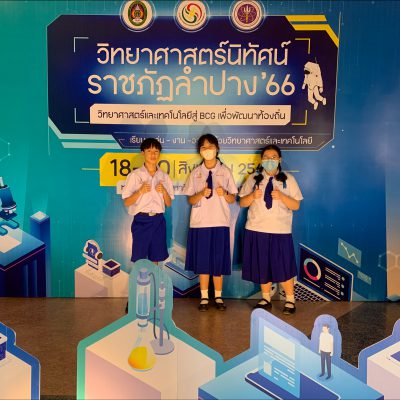 ขอชื่นชมและร่วมแสดงความยินดีกับ เด็กหญิงญาณิกา ธรรมศร เด็กชายศุภกานต์ ชมดอก และเด็กหญิงโกลัญญา มุสิกะเนตร นักเรียนชั้นมัธยมศึกษาตอนต้น ที่ได้รับรางวัลรองชนะเลิศอันดับที่สอง (เหรียญทองแดง) ในการเข้าร่วมแข่งขันตอบปัญหาทางวิทยาศาสตร์และวิทยาศาสตร์สุขภาพ ระดับมัธยมศึกษาตอนต้นในงานวิทยาศาสตร์นิทัศน์ราชภัฏลำปาง ’66 ภายใต้หัวข้อ “วิทยาศาสตร์และเทคโนโลยีสู่ BCG เพื่อพัฒนาท้องถิ่น” ในวันที่ 18 สิงหาคม 2566 ณ หอประชุมใหญ่ มหาวิทยาลัยราชภัฏลำปาง โดยมี อ.สิรินาถ ไซบู และ อ.พิทักษ์ ไชยราช เป็นที่ปรึกษา