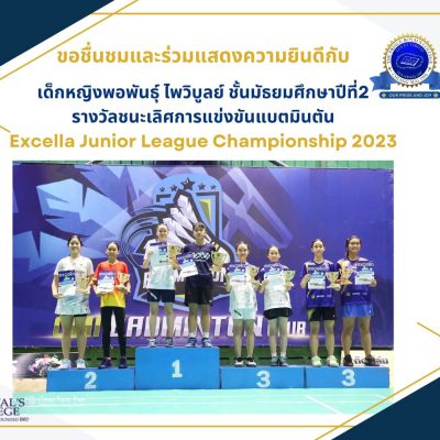 ขอชื่นชมและร่วมแสดงความยินดีกับ เด็กหญิงพอพันธุ์ ไพวิบูลย์ นักเรียนชั้นมัธยมศึกษาปีที่ 2 ที่ได้รับรางวัลชนะเลิศ คู่ผสม และ รางวัลรองชนะเลิศอันดับ2 หญิงคู่
