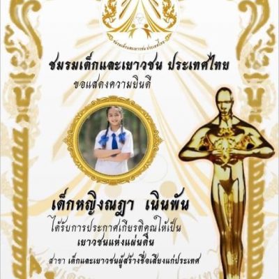 ขอชื่นชมและแสดงความยินดีกับ เด็กหญิงณฎา เนินพันธกุล นักเรียนชั้นประถมศึกษาปีที่ 6