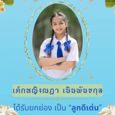 ขอชื่นชมและแสดงความยินดีกับ เด็กหญิงณฎา เนินพันธกุล นักเรียนชั้นประถมศึกษาปีที่ 6