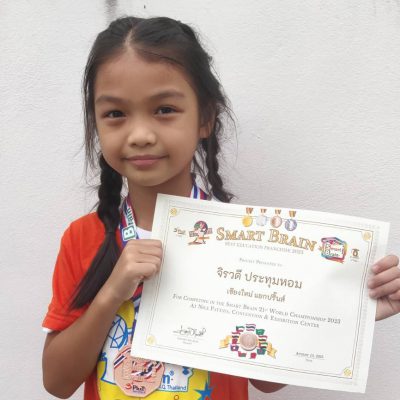 ขอชื่นชมและร่วมแสดงความยินดีกับ เด็กหญิงจิรวดี ประทุมหอม ชั้นประถมศึกษาปีที่ 2/8 ที่ได้รับรางวัลเหรียญทองแดง ในรายการ The Smart Brain 21st World Championship 2023 โดยสถาบัน Smart Brain เมื่อวันที่ 13 สิงหาคม 2566