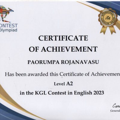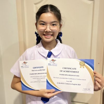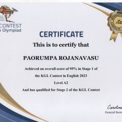 จากการแข่งขันภาษาอังกฤษ โอลิมปิก KGL Contest English Olympiad จัดโดย ITA (International Testing Authority)