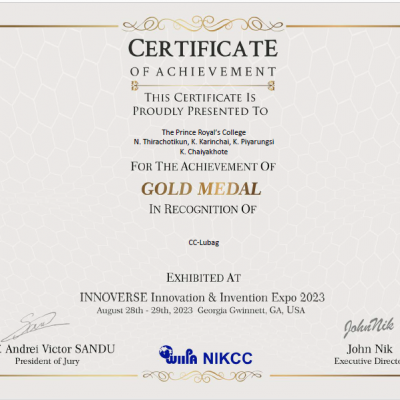 รางวัลนี้นับเป็นความภาคภูมิใจของโรงเรียนปรินส์รอยแยลส์วิทยาลัย ในเวทีระดับนานาชาติ ช่วยสร้างชื่อเสียงอันดีให้โรงเรียนและประเทศไทย ถือเป็นอีกหนึ่งก้าวของความสำเร็จในการสนับสนุนและพัฒนานวัตกรรมของโรงเรียนปรินส์รอยแยลส์วิทยาลัยต่อไป