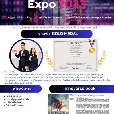 ขอชื่นชมและแสดงความยินดีกับ นายนิธิศ ถิรโชติกุล และ นางสาวกัญญ์วรางศ์ ครินชัย ม.6/3 นักเรียนในโปรแกรมส่งเสริมอัจฉริยภาพผู้เรียนด้านวิทยาศาสตร์และคณิตศาสตร์ รับรางวัล GOLD MEDAL จากการประกวดผลงานวิจัยสิ่งประดิษฐ์และนวัตกรรม จากเวทีนานาชาติ “The INNOVERSE invention & innovation Expo 2023” ระหว่างวันที่ 28 – 29 สิงหาคม 2566 ณ รัฐจอร์เจีย ประเทศสหรัฐอเมริกา (รูปแบบออนไลน์)