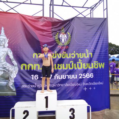 ขอชื่นชมและร่วมแสดงความยินดีกับเด็กชายธนธรณ์ แสงศรี ชั้นประถมศึกษาปีที่ 3 ที่ได้รับรางวัล1 เหรียญทอง 3 เหรียญทองแดง ในรายการ กกท.5 แชมป์เปี้ยนชิพ ปี 2566 รุ่น 8 ปีชาย ณ สระว่ายน้ำรุจิรวงค์ มหาวิทยาลัยเชียงใหม่ เมื่อวันที่ 16 – 17 กันยายน 2566