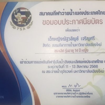 ที่ได้รับรางวัลชนะเลิศ รุ่น 14 ปีหญิง จากการแข่งขันโปโลน้ำชิงแชมป์ประเทศไทย ประจำปี 2566 (ระดับประเทศ)