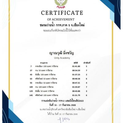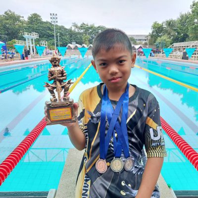 1 เหรียญทองแดง รายการ ผีเสื้อ 50 เมตร และถ้วยรางวัลชนะเลิศอันดับ 6 รุ่นอายุ 9ปีชาย