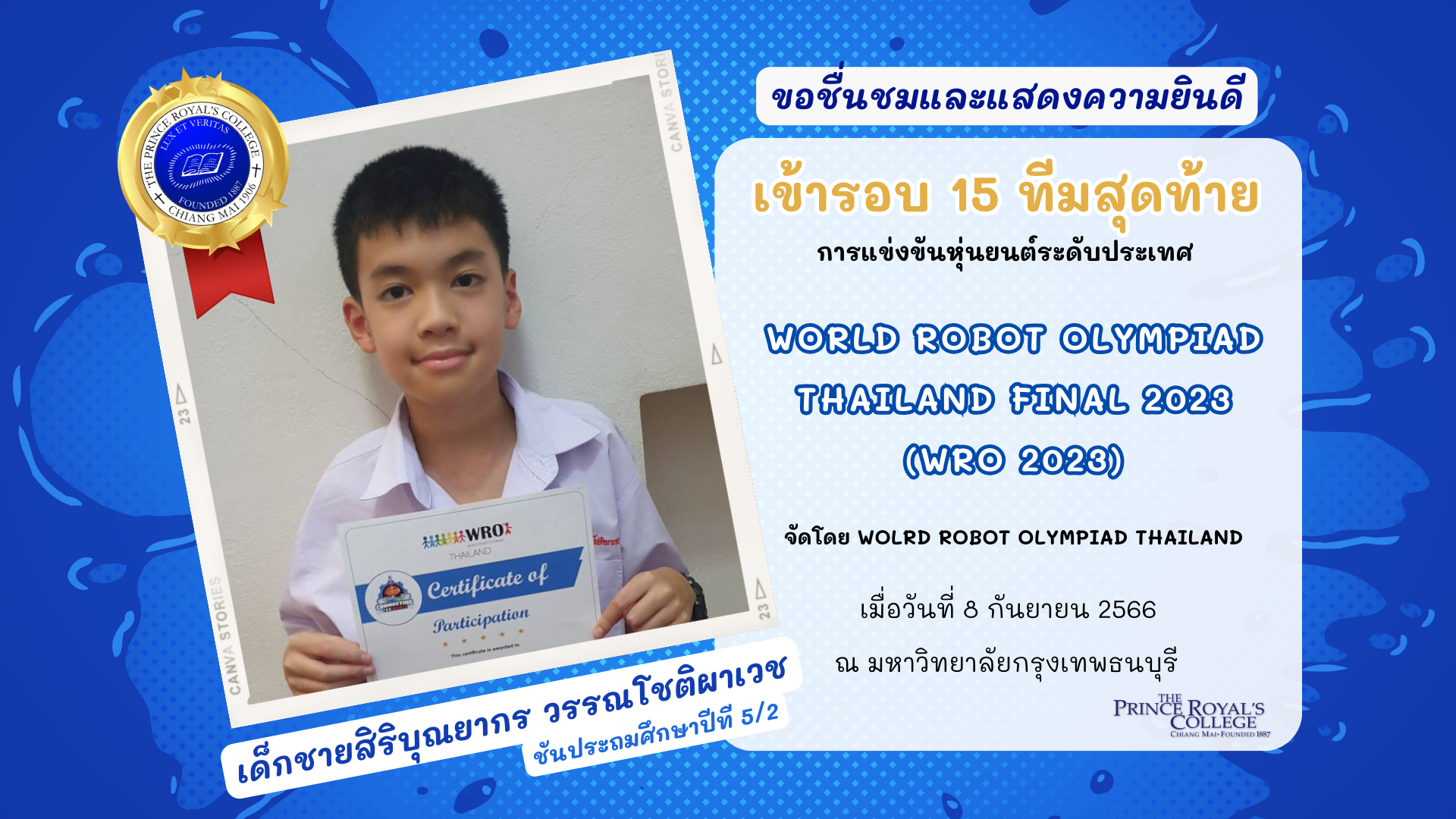 ที่เข้ารอบ 15 ทีมสุดท้ายระดับประเทศ ในการแข่งขัน World Robot Olympiad Thailand Final 2023 (WRO 2023) (ระดับประเทศ)