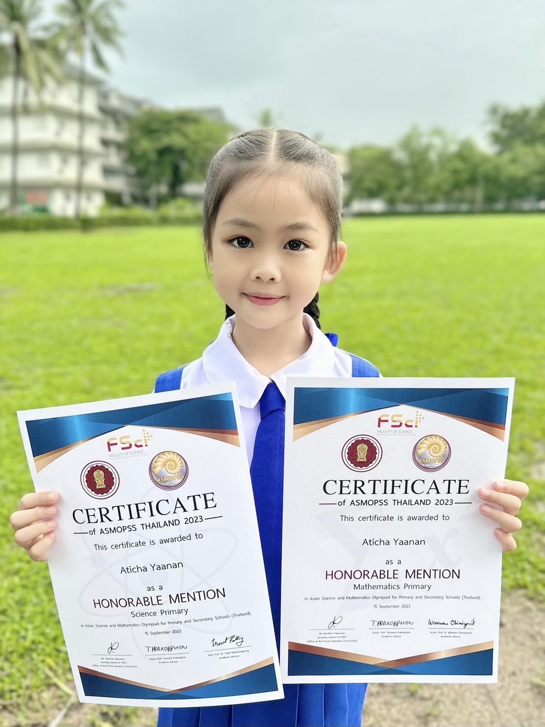ได้รับรางวัลรางวัลชมเชย วิชาคณิตศาสตร์ และรางวัลชมเชย วิชาวิทยาศาสตร์