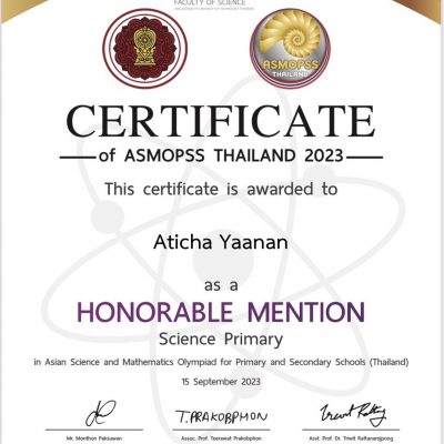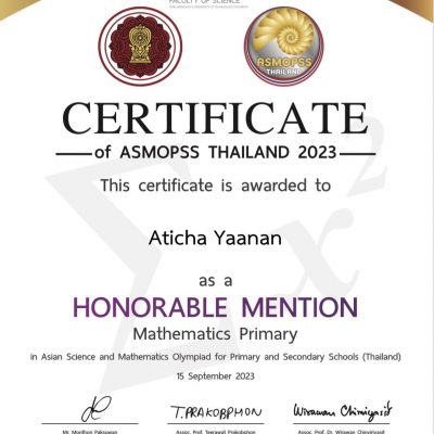 ระดับชั้น ป.1 จากการแข่งขัน Asian Science and Mathematics Olympiad for Primary and Secondary Schools (Thailand) : ASMOPSS THAILAND 2023