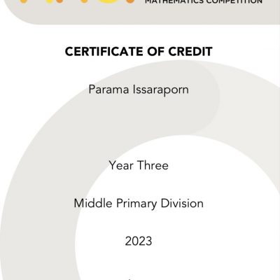 ขอชื่นชมและร่วมแสดงความยินดีกับ เด็กชายปรมะ อิศราภรณ์ ชั้นประถมศึกษาปีที่ 2/3 ที่ได้รับรางวัล CREDIT AWARD (merit award 55-60%)Year Three Middle Primary Division2023 จากรายการแข่งขัน AMC.AUSTRALIAN MATHEMATICS COMPETITION PROGRAM โดย Math Mission Thailand & The Newton Sixth Form School เมื่อวันที่ 6 สิงหาคม 2566
