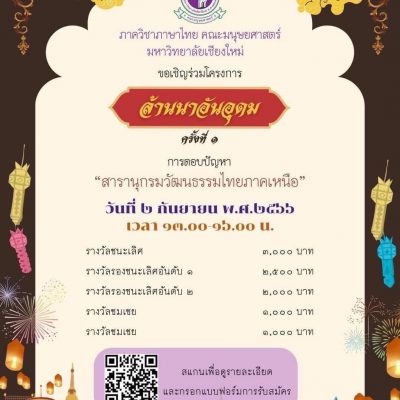 ภาคเหนือ” โครงการล้านนาอันอุดม ครั้งที่ 1 วันที่ 2 กันยายน ก2566 ณ ภาควิชาภาษาไทย คณะมนุษยศาสตร์