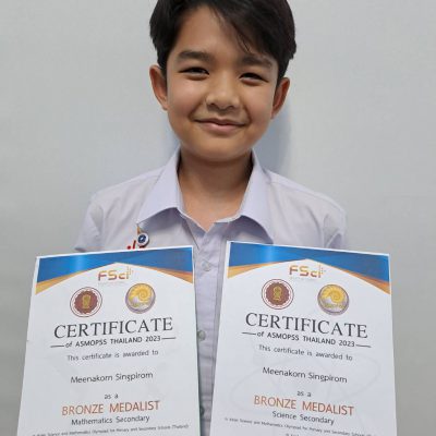 - เด็กหญิง พชรมน วิรยศิริ ชั้นมัธยมศึกษาปีที่ 2 – รางวัลเหรียญเงินวิชาภาษาอังกฤษและวิทยาศาสตร์