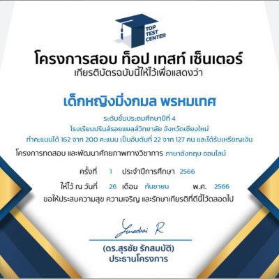 จากโครงการสอบแข่งขันวัดอัจฉริยภาพทางวิชาการ วิชาภาษาอังกฤษ (ออนไลน์) ครั้งที่ 1 ประจำปีการศึกษา 2566