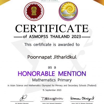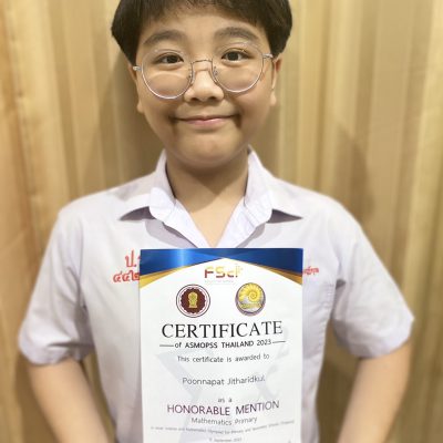 จากการสอบแข่งขันวิชาการระดับประเทศ Asian Science and Mathematics Olympiad for Primary and Secondary Schools (Thailand) : ASMOPSS THAILAND 2023 รอบความเป็นเลิศระดับประเทศ