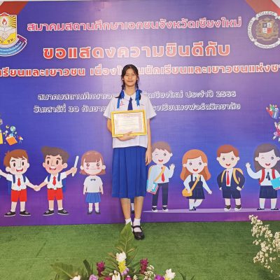 ขอชื่นชมและร่วมแสดงความยินดีกับ เด็กหญิงปริชชานิดา นุชแจ้งบง นักเรียนชั้นมัธยมศึกษาปีที่ 3 ที่ได้รับรางวัลนักเรียนและเยาวชนดีเด่นประจำปีการศึกษา 2566 เนื่องในวันเยาวชนแห่งชาติ เข้ารับใบประกาศเกียรติคุณจาก ดร.ยุพิน บัวคอม ศึกษาธิการจังหวัดเชียงใหม่ จัดโดยสมาคมสถานศึกษาเอกชนจังหวัดเชียงใหม่ ประจำปีการศึกษา 2566 ณ หอประชุมเซนต์โยเซฟ อาคารอังเดร เกแก๊ง โรงเรียนมงฟอร์ตวิทยาลัย (แผนกมัธยม) เมื่อวันที่ 30 กันยายน 2566