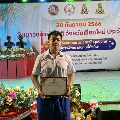 ขอชื่นชมและแสดงความยินดีกับ นายจิระวัฒน์ โตวัฒน์นิมิต นักเรียนชั้น ม.4/7 ที่ได้รับเกียรติบัตรเพื่อยกย่องชูเกียรติ รางวัลเด็กและเยาวชนดีเด่น จังหวัดเชียงใหม่ ประจำปี 2566 สาขาศิลปวัฒนธรรม โดยมีนายนิรัตน์ พงษ์สิทธิถาวร ผู้ว่าราชการจังหวัดเชียงใหม่ เป็นประธานมอบรางวัล เมื่อวันเสาร์ที่ 30 กันยายน 2566 ณ ลานกิจกรรมประตูท่าแพ อำเภอเมืองเชียงใหม่ จังหวัดเชียงใหม่ จัดโดย สภาเด็กและเยาวชนจังหวัดเชียงใหม่ ร่วมกับบ้านพักเด็กและครอบครัวจังหวัดเชียงใหม่ และชมรมเยาวชนดีเด่นจังหวัดเชียงใหม่
