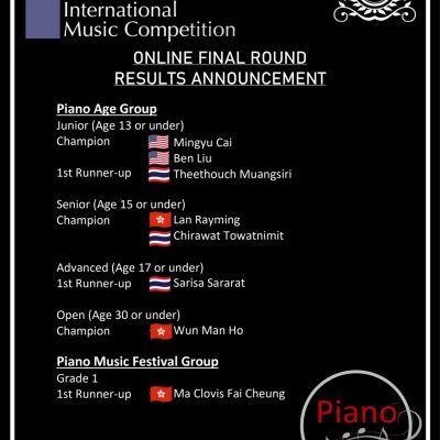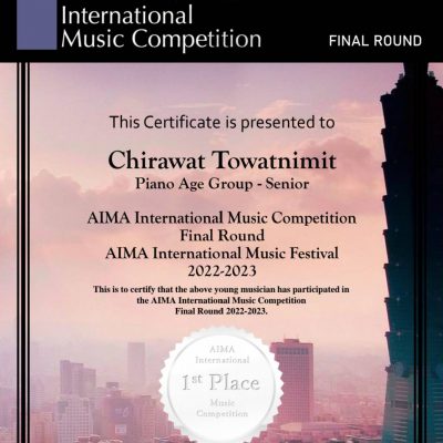ขอชื่นชมและแสดงความยินดีกับ นายจิระวัฒน์ โตวัฒน์นิมิต นักเรียนชั้น ม.4/7 ที่ได้รับรางวัลชนะเลิศ จากการแข่งขันเปียโนนานาชาติ AIMA Festival 2023 the ONLINE (final round) Video Submission รุ่น Age Group Senior จัดแข่งขันวันที่ 29 กรกฎาคม 2566 ประกาศผลเมื่อวันที่ 13 สิงหาคม 2566 จัดโดย The Association of International Music & Arts – AIMA ประเทศไต้หวัน Taiwan