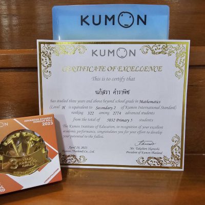 จากการแข่งขันวัดระดับความรู้ ด้านวิชา คณิตศาสตร์ จัดโดย บริษัท คุมอง (ไทยแลนด์) จำกัด เมื่อวันที่ 20 เมษายน 2566