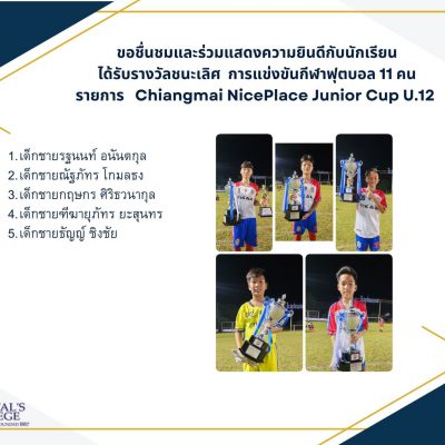 ที่ได้รับรางวัลชนะเลิศอันดับที่ 1 การแข่งขันกีฬาฟุตบอล 11 คน รายการ Chiangmai NicePlace Junior Cup U.12 ระหว่าง วันที่ 21-23 ตุลาคม 2566